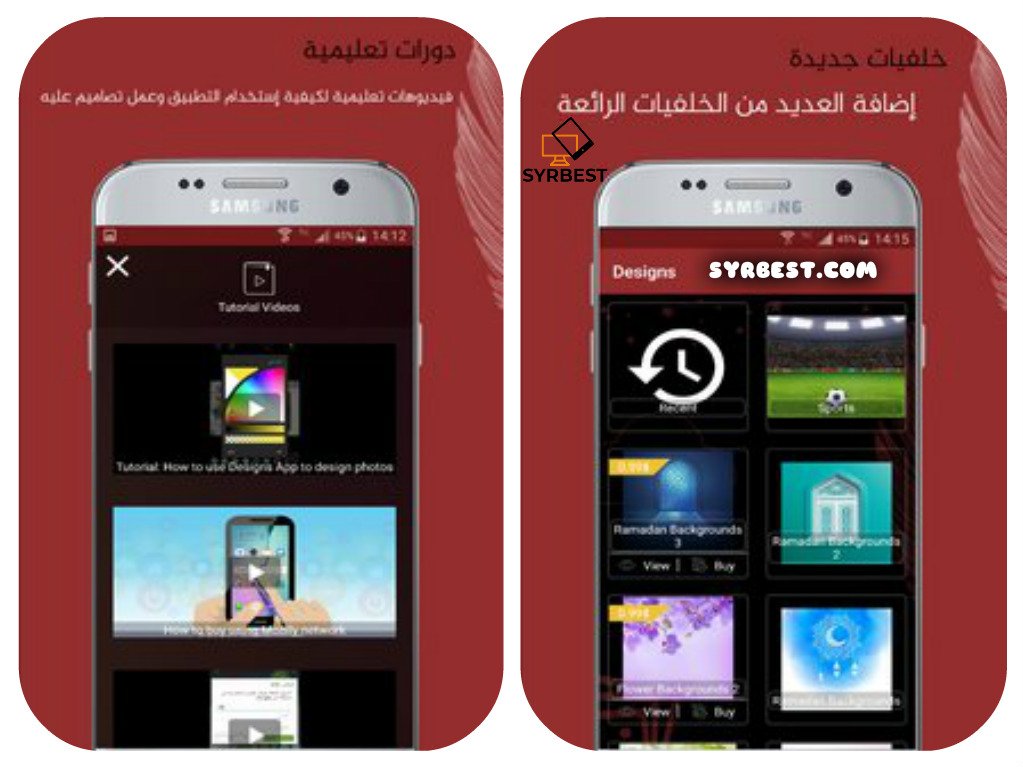 حديثنا اليوم عن تطبيق يكتب على اي صورة حائز على جائزة آبل لأفضل برنامج في عام 2014 الا وهو تطبيق “تصاميم” وهو متخصص في التعديل على الصور لهواتف الاندرويد حيث يعد من أفضل البرامج التي تستطيع من خلالها تحرير اي صورة باحترافية وهو باللغة العربية و يتمتع بالكثير من التأثيرات على النصوص من الموبايل مثل الخلفيات الملونة والطبيعية و الرموز التعبيرية.