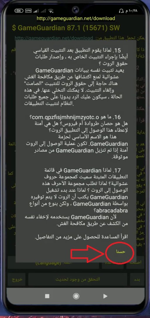 بعد اختيار برنامج جيم غارديان ستظهر لدينا نافذة كما في الصورة الاولى نضغط على الخيار ثم تظهر لدينا صفحة معلومات السكربت نختار حسنا كما في الصورة الثانية ، الآن في الصفحة التالية نختار أصلحه .