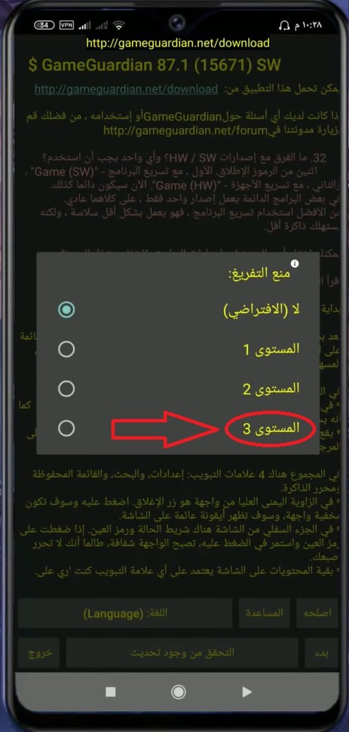 بعد اختيار أصلحه ستظهر لك نافذة تختار منها منع التفريغ كما في الصورة الأولى ثم نختار المستوى 3 كما في الصورة الثانية ثم نختار البدء ، ونقوم بتشغيل لعبة ببجي موبايل كما في الصورة الرابعة.